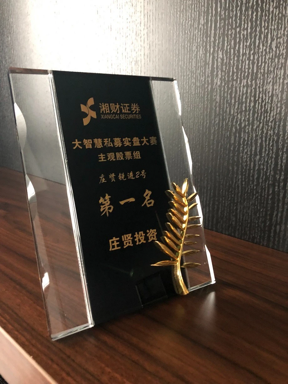 然而庄贤锐进2号自2018年成立以来累计收益高达41.84%,年化收益39.16%,最大回撤仅-6.17%。3月26日在湘财证券于上海举行的“大智慧私募实盘大赛”颁奖典礼上庄贤锐进2号凭借出色的数据荣获“大智慧私募实盘大赛主观股票组”冠军。