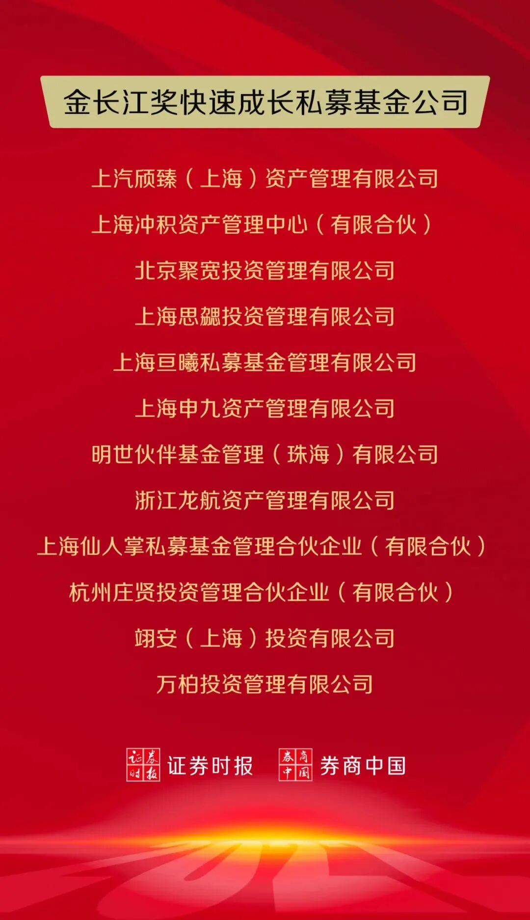 该奖项主要考察近两年新成立、管理规模在20亿元以下的中小型私募基金公司,综合其旗下基金业绩表现、基金经理及投研体系、管理规模发展速度、公司治理及客户服务等因素,评选出2021年度发展最迅速、且具有较高成长潜力的中小型私募基金公司。
